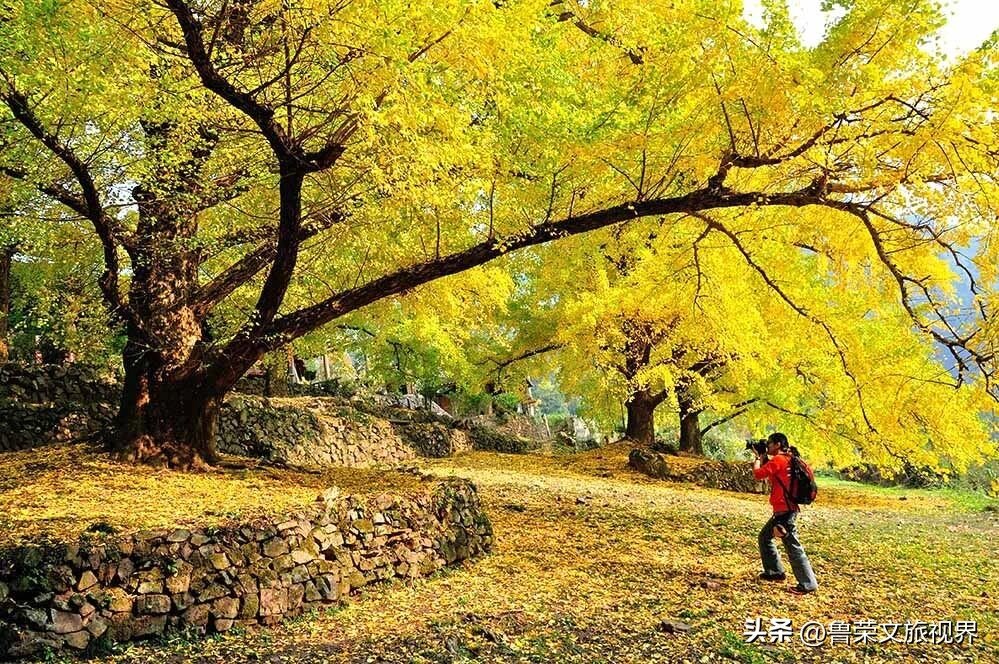 妥乐村的灵魂,是那片占地1200余亩的古银杏林。全村有古银杏树1200余株,其中百年以上的就有1150株,是世界上罕见的古银杏群落。走进村里,仿佛进入了一个银杏的世界:道路两旁、房前屋后、田埂溪边,到处都是高大的银杏树,枝叶繁茂,金黄一片。最引人注目的是村中的“树王”,经专家考证,距今已有1500多年的树龄,树干粗壮得需要6个成年人才能合抱,枝桠向四周伸展,覆盖面积达百余平方米,堪称“千树之王”。这棵树被木栅栏围了起来,树干上挂满了游客祈福的红丝带,风吹过,红丝带与金黄的树叶相映成趣,透着浓浓的人文气息。