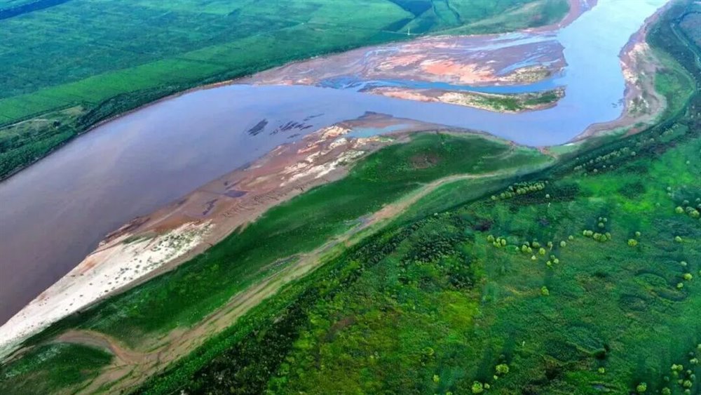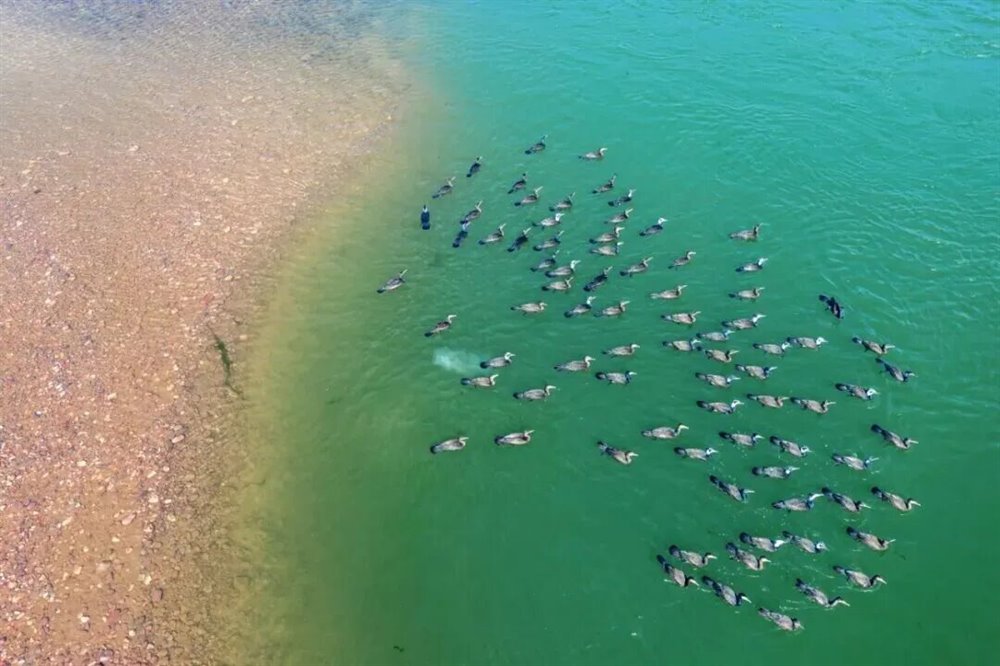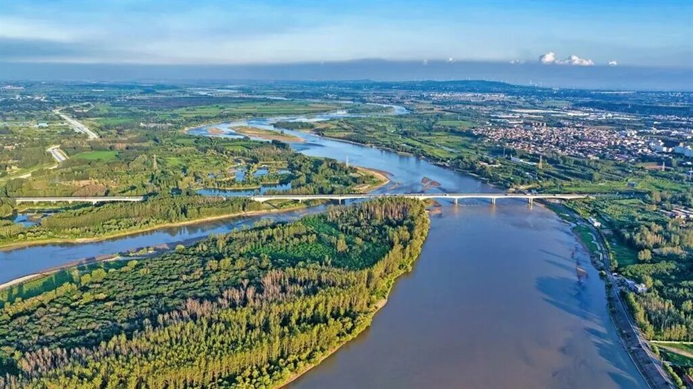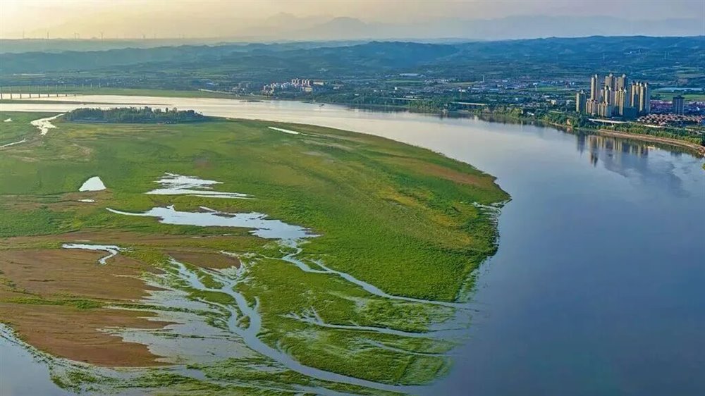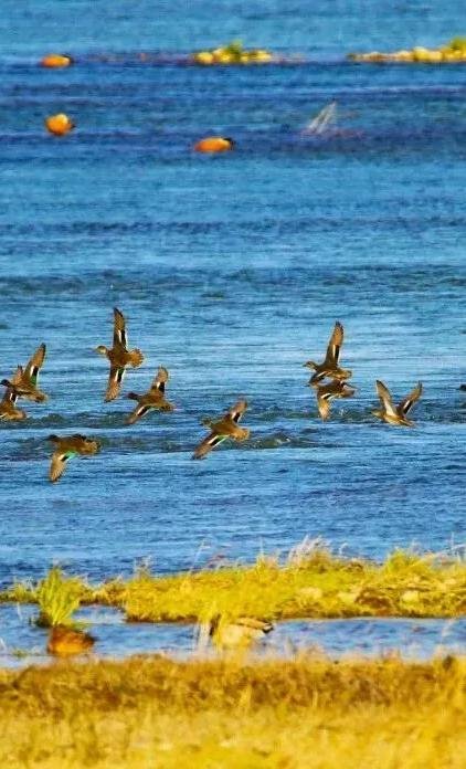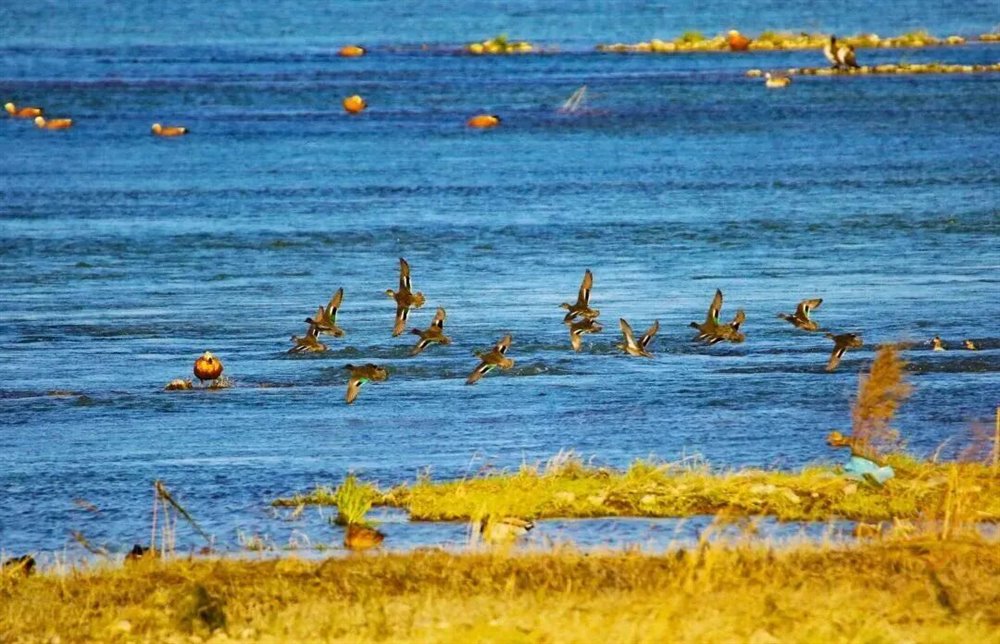 辽阔的黄河滩涂上,万鸟翔集,构成一幅生动的自然图景。