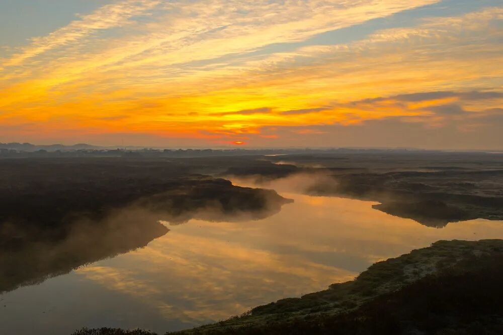 雾、水、光、影交融相映,原本清寂的江景,被点染成一片温暖浓烈的色调。宋政军 摄