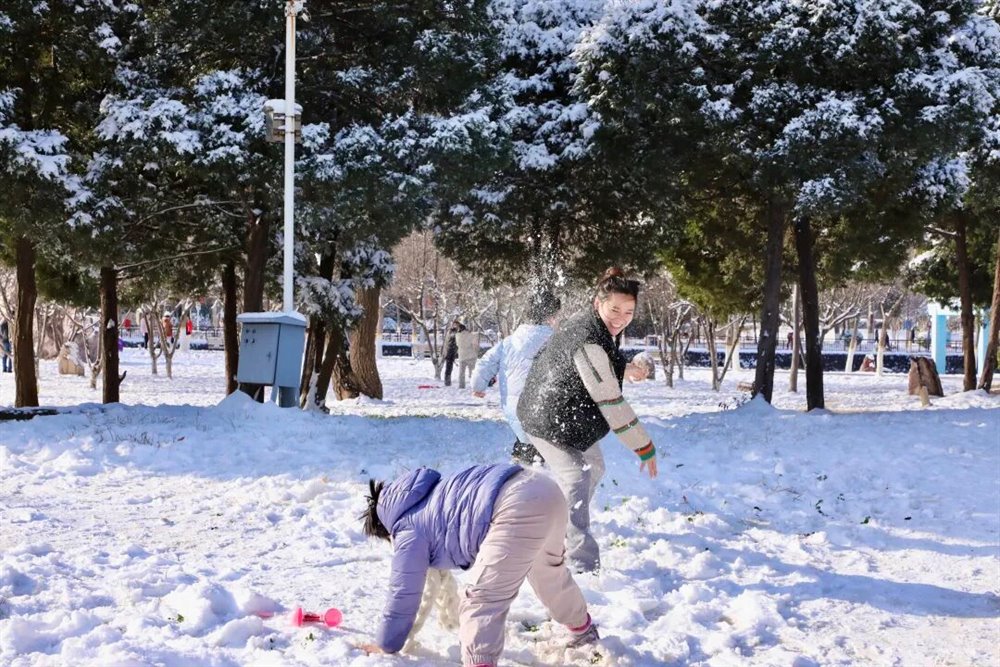 笑声惊起枝头积雪簌簌落下