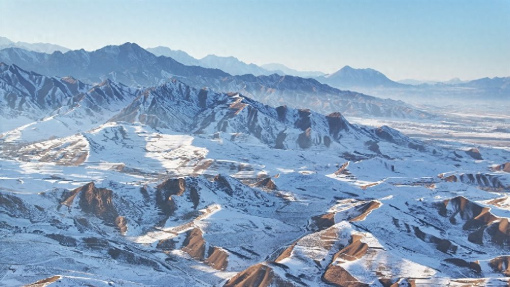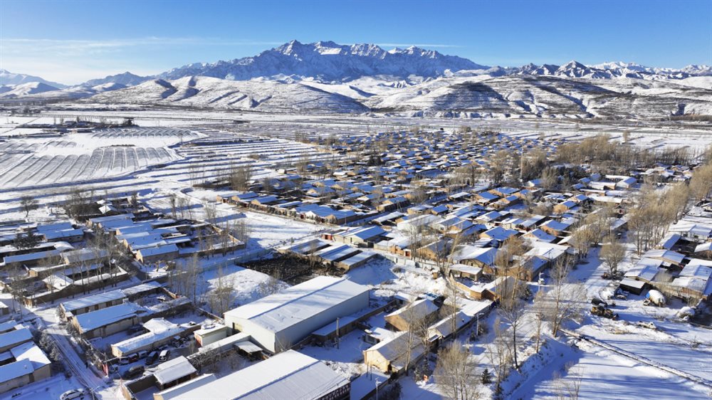 仲冬时节,位于祁连山下的甘肃省张掖市民乐县被一场大雪妆点的银装素裹,静谧的村庄、整齐的房舍、辽阔的田野、远处的雪山在阳光的照射下,层峦叠嶂的山峰与萦绕飘逸的晨雾相映成景,宛如人间仙境,美不胜收。