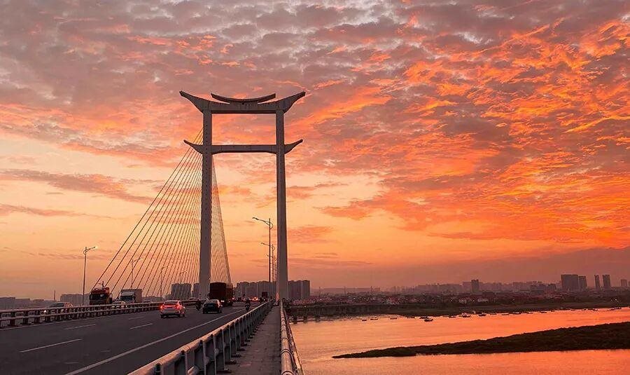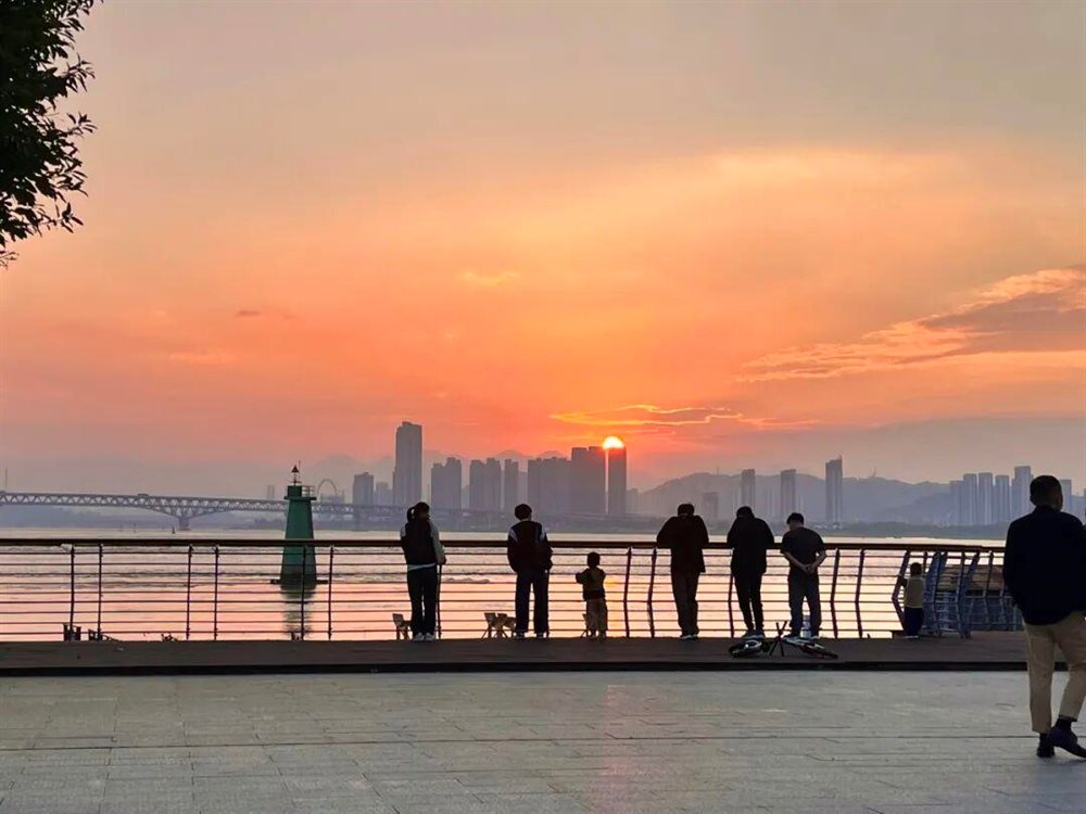 福州闽江畔的落日是“生活的动态画卷”。