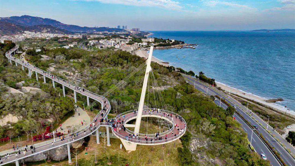 作为2023年正式开放的网红线路,林海线二期的盼归塔(俗称“大飞盘”)是来厦门看海的必打卡点——270°环海视角可对望金门、俯瞰鹭岛南部海景。