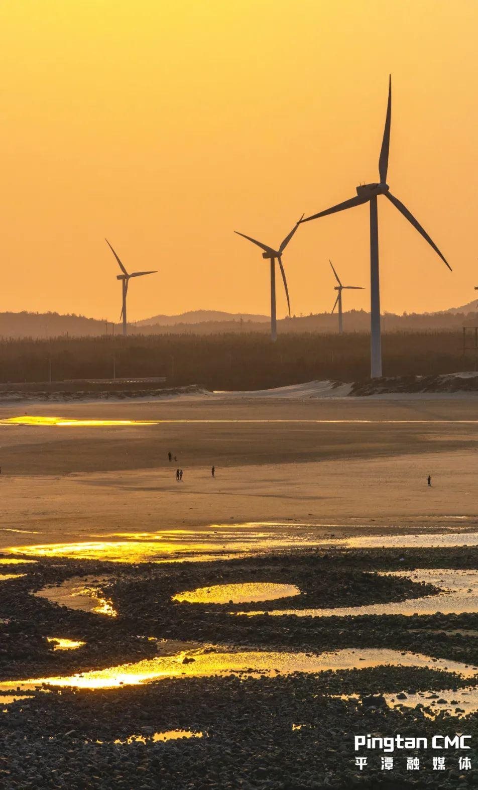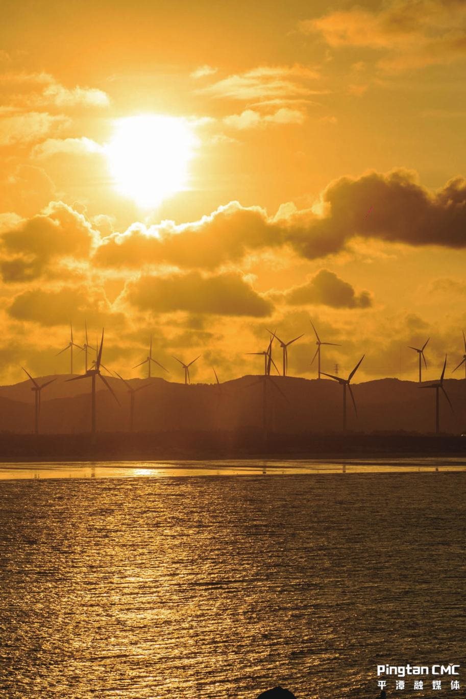 当金光遍布海面,风车在夕阳的余晖中悠悠转动,随手一拍,皆是溢出屏幕的岁月静好。日落风车海,浪漫不过平潭岛。