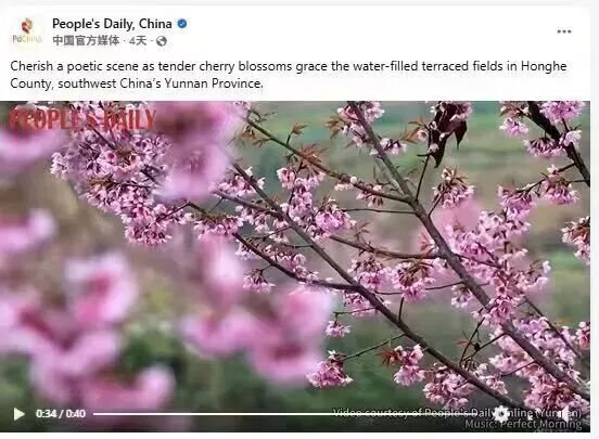 近日,梯田与冬樱花相映还被人民网通过Facebook、X等海外社交平台,以中英文双语形式向全球推介。