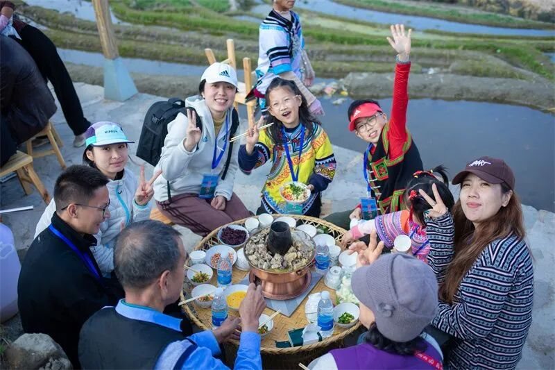 傍晚,围着竹篾桌享用一顿地道的哈尼长街宴,在焖锅酒的醇香和欢快的乐作舞中,感受哈尼族的热情似火。