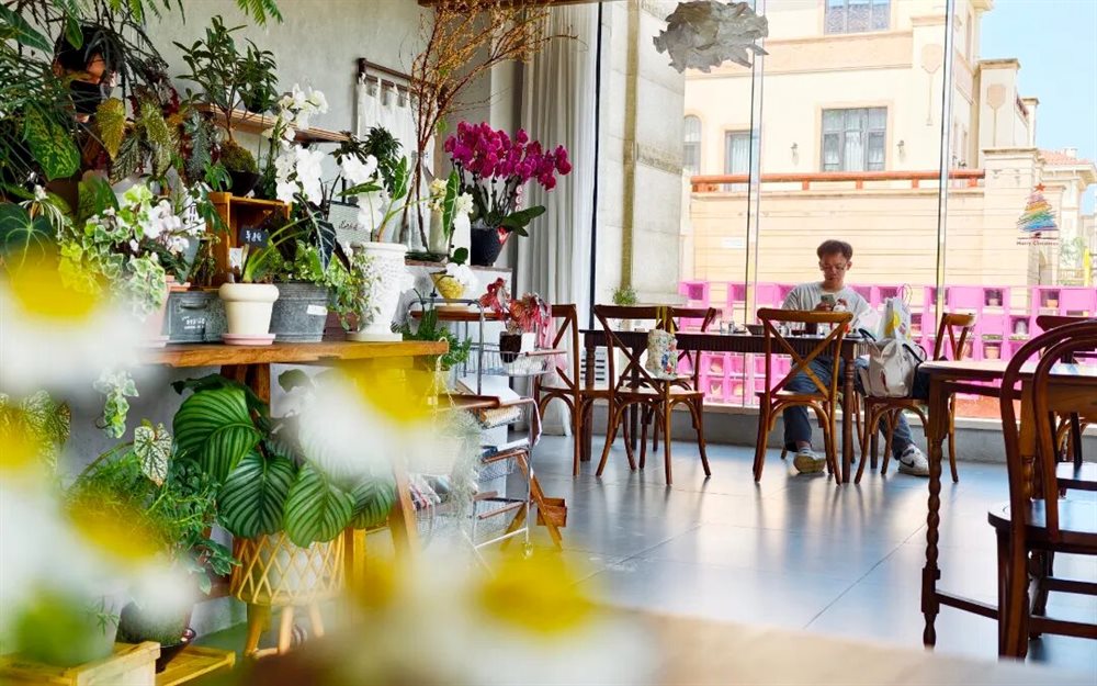 而五源河西岸街区,则为城市休闲增添了另一种可能。吉木烤堂里烟火升腾,Do3咖啡·餐酒馆内香气四溢;隐于绿荫间的山茶与猫,将植物、花艺与萌宠融于一体,让游客感受被自然与温柔包裹的慢时光。